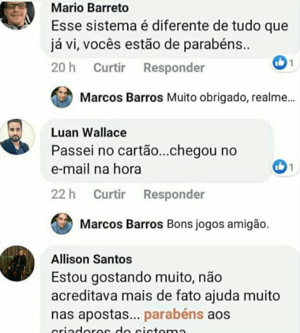 Responder · Curtir · Seguir · 46 minEstes são apenas alguns comprovantes e depoimentos reais de apostadores que já usaram o sistema e ganharam!